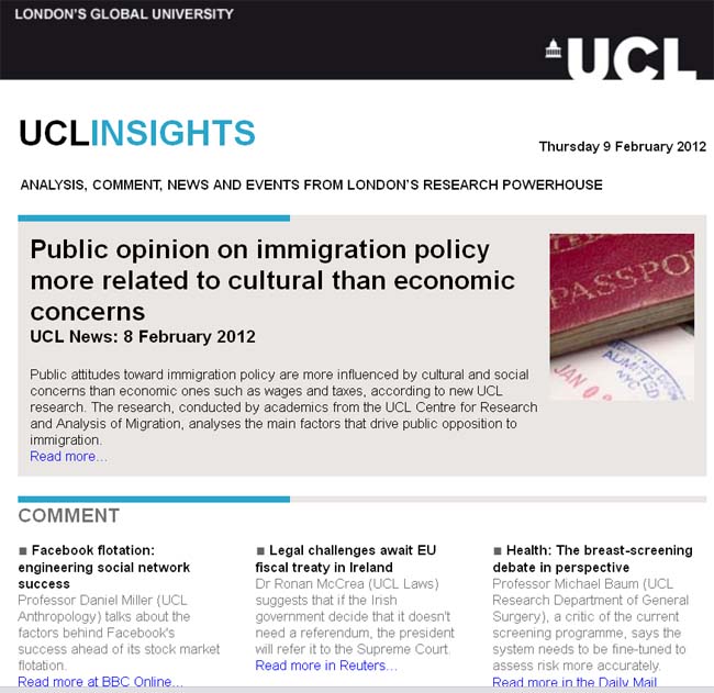 Public opinion on immigration policy more related to cultural than economic concerns Posted on February 10, 2012 by Constitution Unit UCL Insights: read the full newsletter at http://uclnews.org.uk/MZB-NS75-C83QMDJV3E/cr.aspx Share this: Share on X (Opens in new window) X Share on Bluesky (Opens in new window) Bluesky Share on Facebook (Opens in new window) Facebook Share on Reddit (Opens in new window) Reddit Email a link to a friend (Opens in new window) Email Share on Print & PDF (Opens in new window) Print & PDF Like this:Like Loading... Related