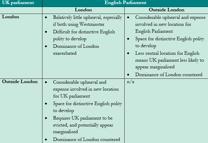 Implications of alternative locations for an English Parliament